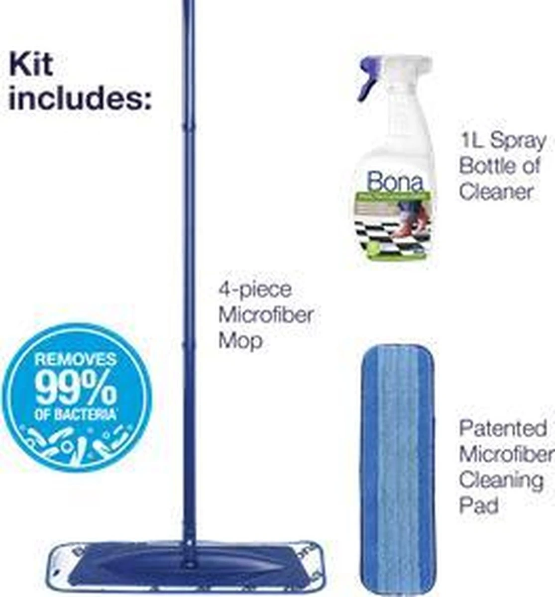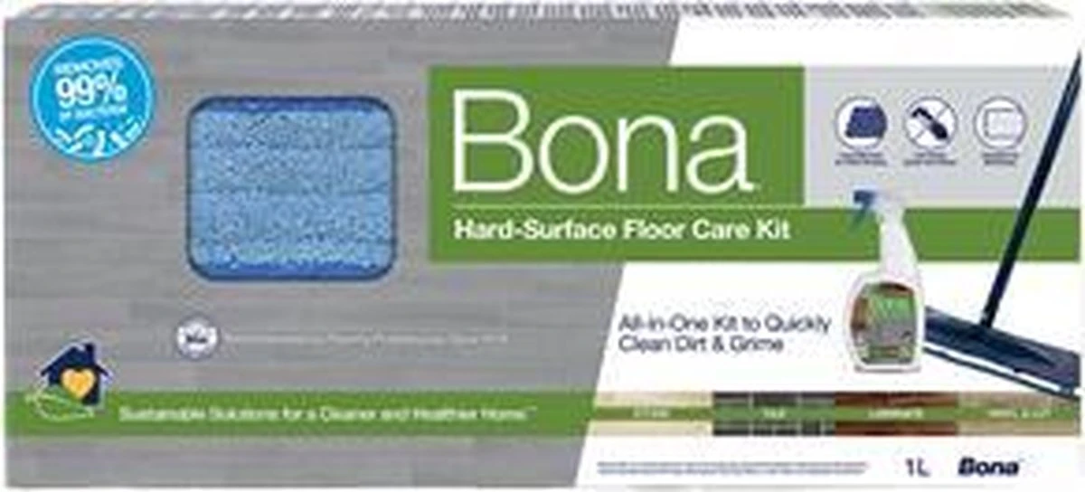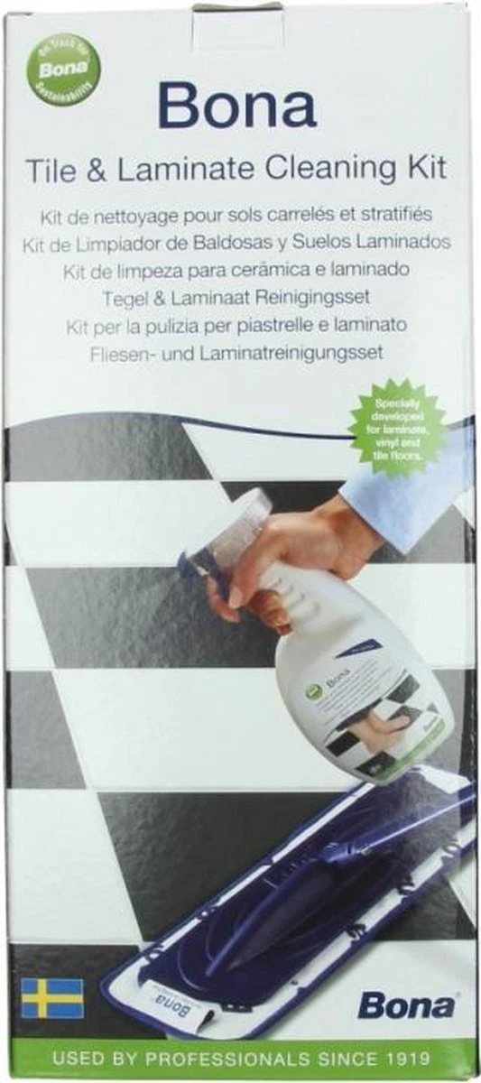 Net ouders geworden, nieuw huis of nieuwe vloeren? De Bona Tegel en Laminaat Reinigingsset is precies wat je nodig hebt. Bona Harde Vloer, Tegel & Laminaat Reiniger is speciaal ontwikkeld om stof, vuil en vet veilig te verwijderen van houten vloeren. Gebruiksklare formule die snel droogt en geen resten achterlaat.