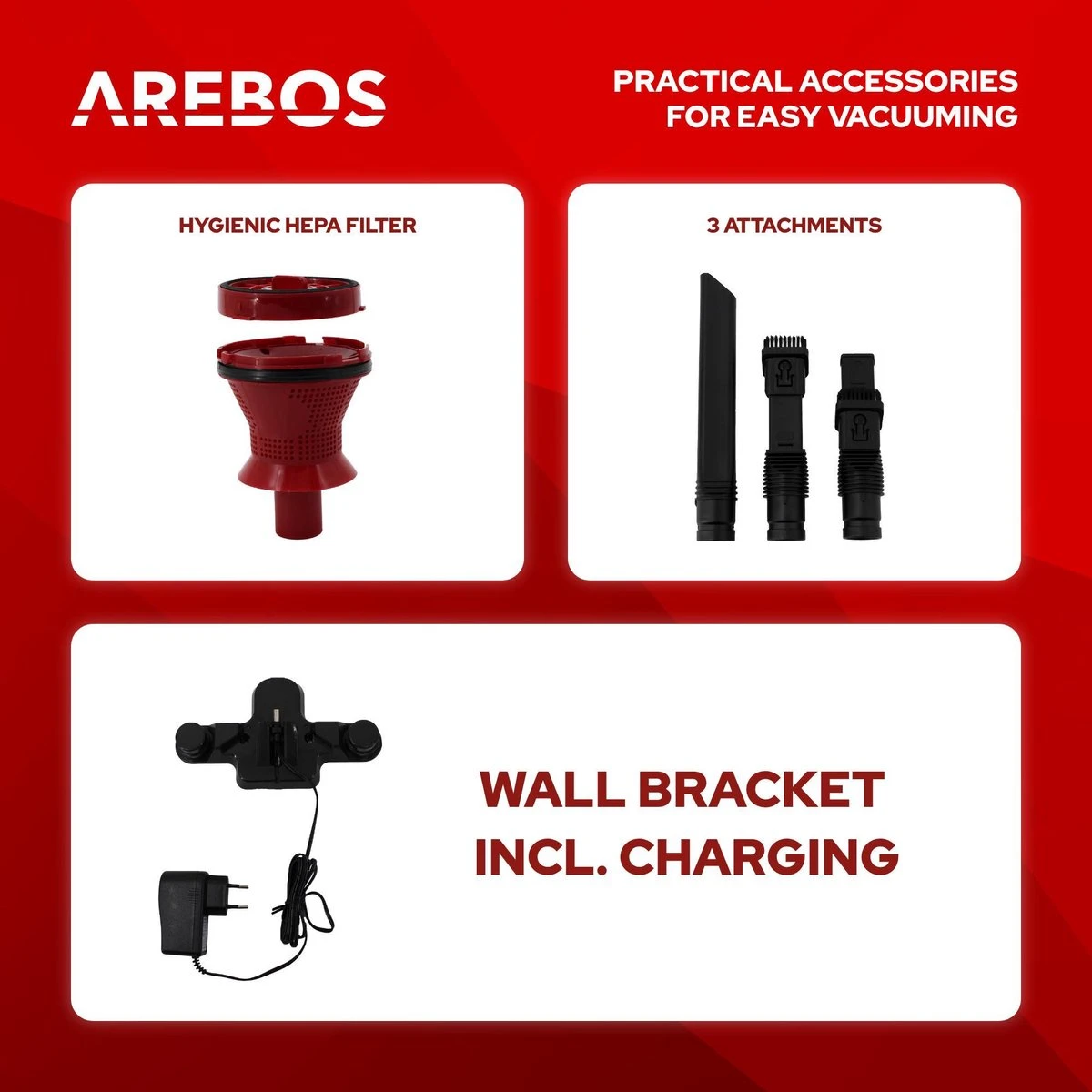 De accustofzuiger van AREBOS verwijdert niet alleen stof en vuil van vloeren: door het compacte ontwerp kan de stofzuiger ook voor meerdere andere toepassingen worden gebruikt. De stofzuiger kan overal worden gebruikt en alle plekjes bereiken die bereikt moeten worden.