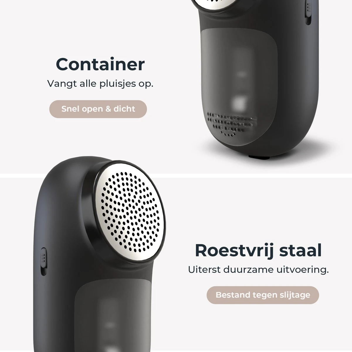 Voor het verwijderen van de pluisjes of pillen hebben wij gebruik gemaakt van roestvrij stalen precisiemesjes. Deze mesjes zijn scherp, uiterst effectief en hebben een hoge duurzaamheid vanwege de gebruikte materialen. Met 25.000 rotaties per minuut worden de pluisjes razendsnel verwijderd zonder ook maar een kans te krijgen er te blijven zitten. Bovendien krijg jij ook nog eens 2 extra precisiemesjes om een levenslang plezier te hebben van de Attic Lux elektrische ontpluizer!