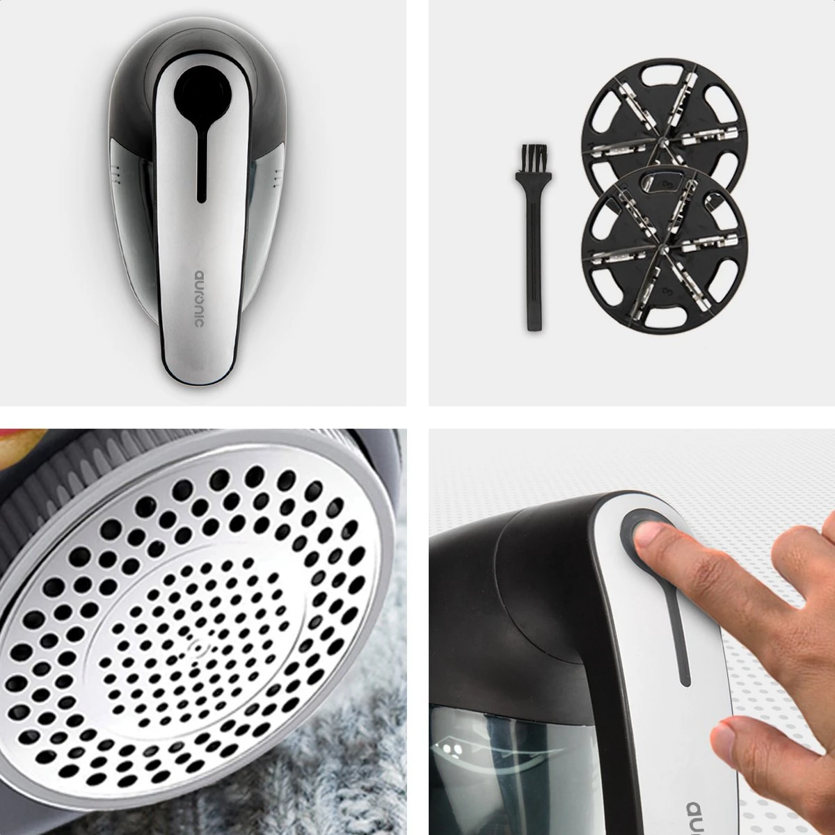 Kan je lievelingstrui een oppepper gebruiken, of heeft de kat weer de pluizen aan je bank gekrabd? De Auronic ontpluizer heeft een scheerkop met 3 verschillende maasgrootten, waardoor hij voor elk soort textiel gebruikt kan worden. Kleding, meubels, lakens of gordijnen, noem maar op. De Auronic ontpluizer verwijdert overal zowel de dikke pluizen als de kleine bolletjes.