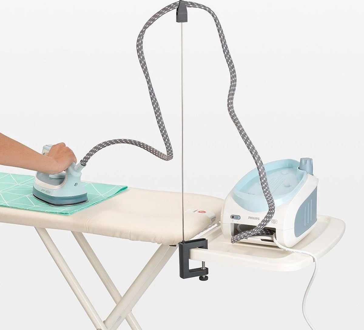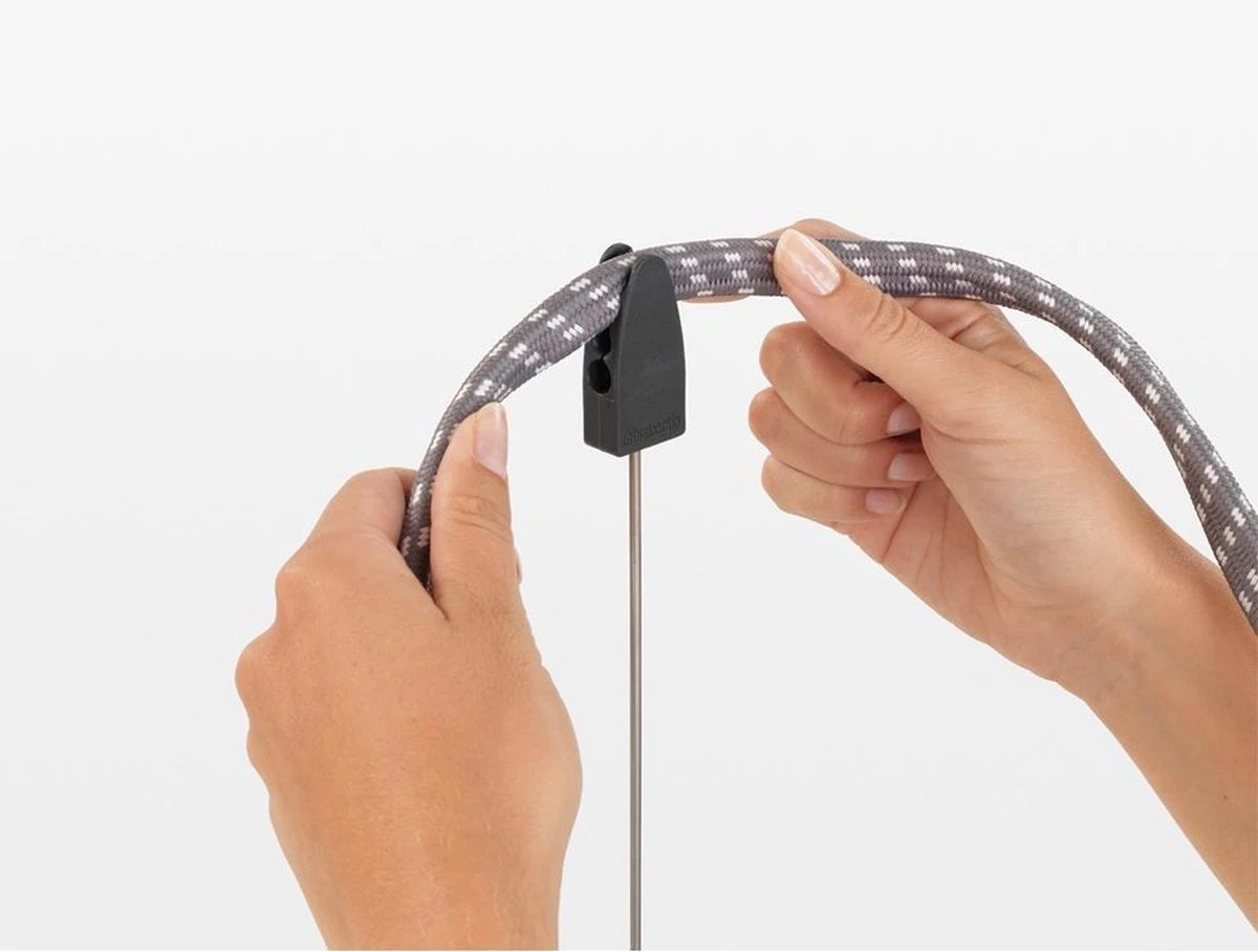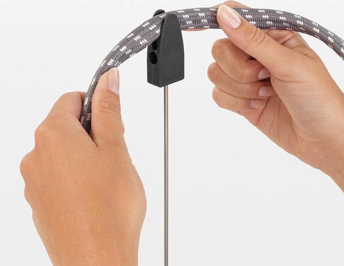 De snoergeleider van Brabantia zorgt ervoor dat geen snoer je meer in de weg zit tijdens het strijken. Dankzij de slimme houder past de flexibele antenne op bijna alle stoomstrijkplanken. Zet hem vast op je strijkplank met de universele klem en laat hem zitten: als je de strijkplank inklapt, vouw je hem gewoon in. Dat is nog eens flexibel!