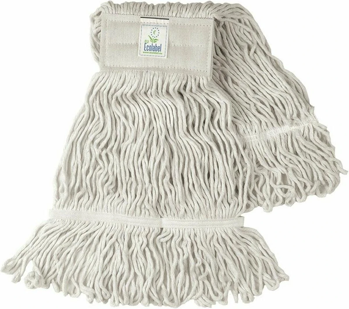 Vloermop van eerste kwaliteit katoen. 00 grams gelust met band.