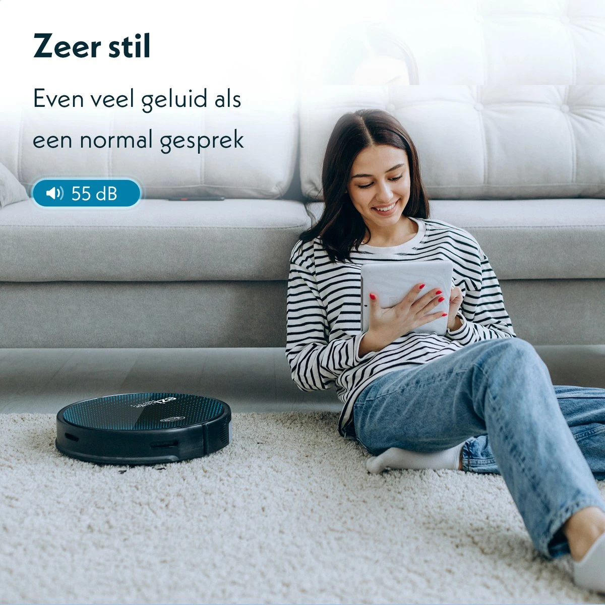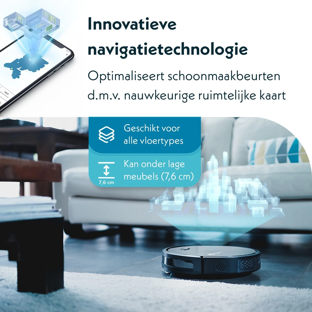 Deze mooie zwarte robotdweilstofzuiger is geschikt voor ieder huishouden. Besteed je liever jouw tijd aan leuke activiteiten dan stofzuiger en dweilen? Dan is de Eziclean® Aqua-Connect x550 perfect voor jou!