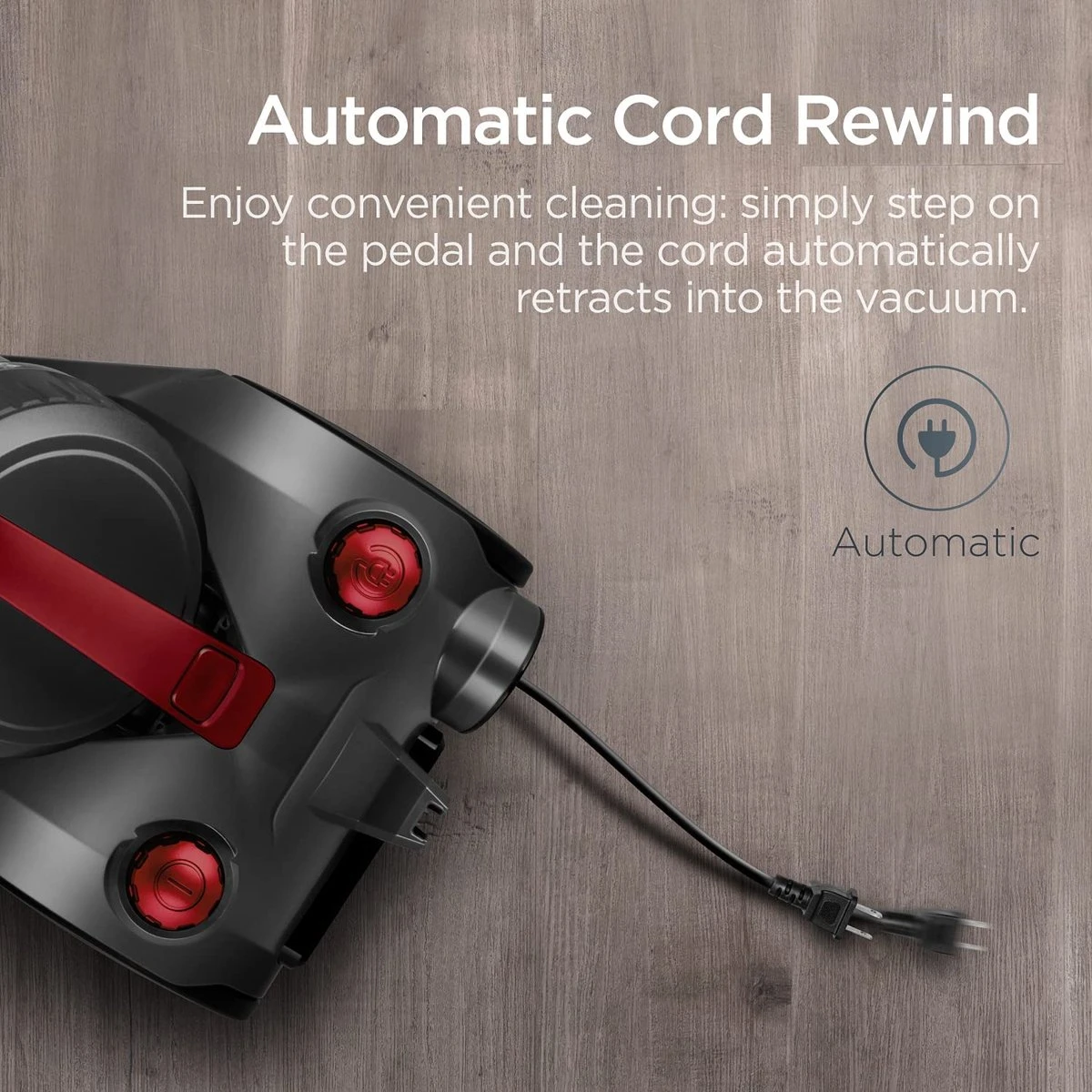 Wikkel nooit meer een snoer op met het 4 meter lange netsnoer met automatische snoeropwikkeling voor nog gemakkelijker schoonmaken.