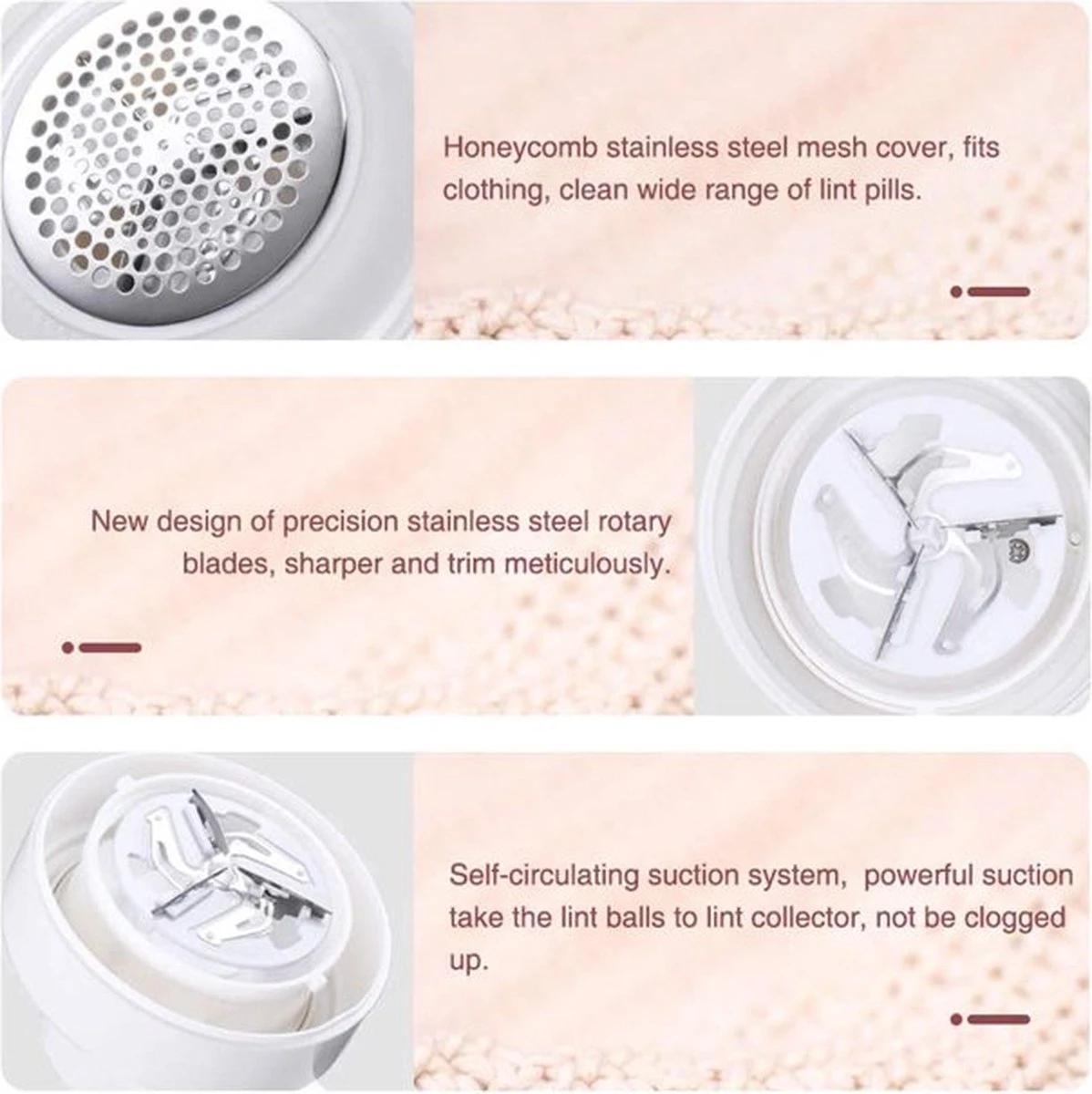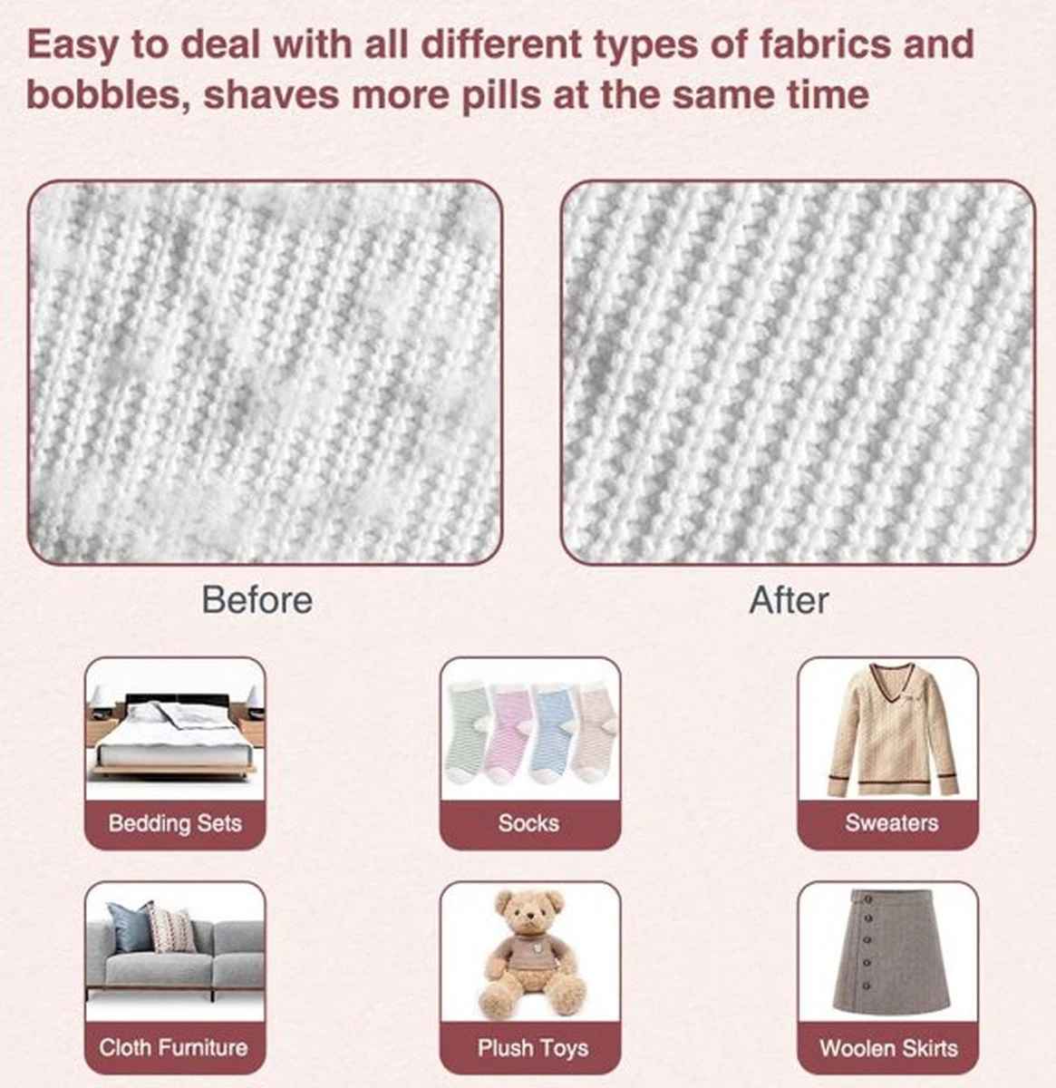 De pluizenverwijderaar levert het beste resultaat dankzij het krachtige vermogen (5W) en het opzetstuk met 6 scherpe mesjes. Bovendien ontvang je een extra opzetstuk. Ondanks dat de ontpluizer voorzien is van scherpe mesjes, is de pluizenverwijderaar 100% veilig om te gebruiken en brengt deze geen enkele schade toe aan het textiel.
