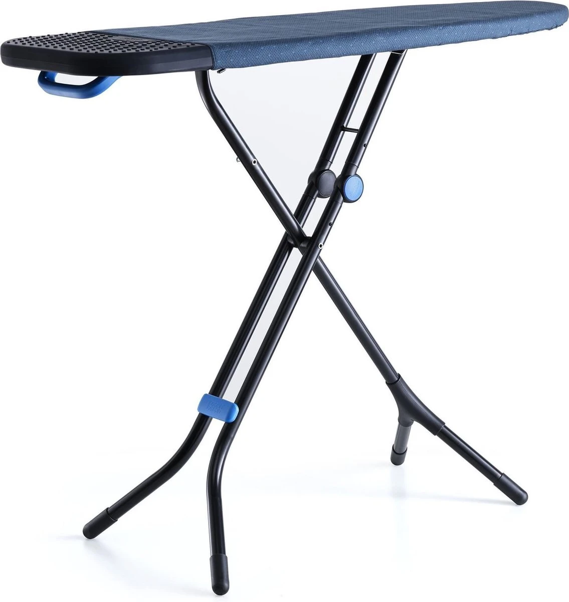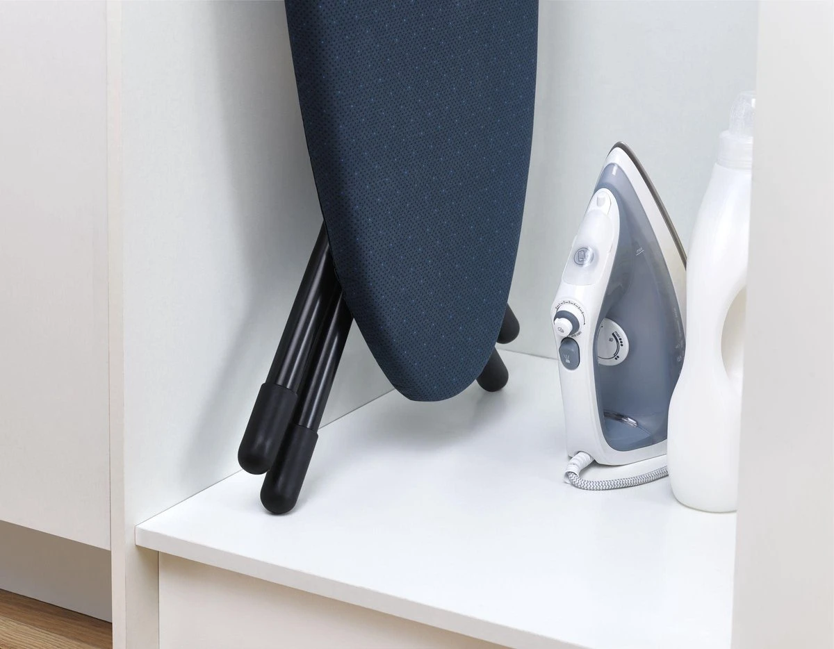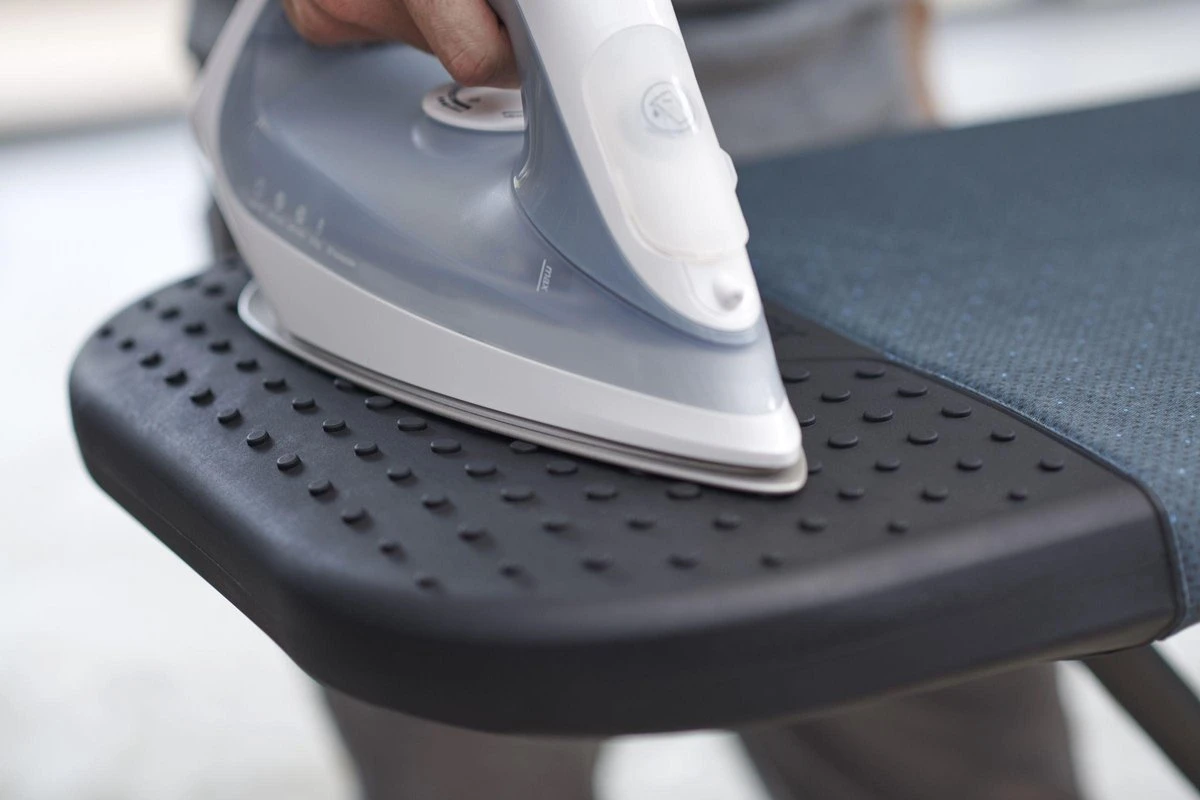 Traditionele strijkplanken kunnen erg onhandig zijn in huis. De poten blijven makkelijk achter de deurpost haken en het neerzetten van een strijkplank is soms lastig en luidruchtig. De Glide strijkplank heeft een volwaardig formaat, een revolutionair design en is compacter dan traditionele strijkplanken. Het innovatieve mechanisme van de poten zorgen ervoor dat hij extra makkelijk in -en uit te klappen is. De poten zijn verstelbaar in 7 verschillende standen met een hendel van 84 t/m 99 cm. Daarnaast vind je aan de achterzijde een handgreep waardoor hij makkelijker verplaatsbaar is. Deze handgreep is tegelijkertijd het hulpstuk waarmee je hem aan de bijgeleverde haak kunt ophangen aan de binnenzijde van een deur. De hoes is gemaakt van een geavanceerde meerlagige ‘DripShield’ technologie die speciaal is ontworpen voor grote strijkvolumes of voor het gebruik van stoom. De hoes kan daarnaast ook gemakkelijk verwijderd worden.