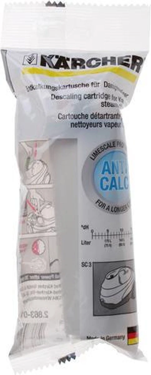 | Geschikt voor | De Kärcher ontkalkingspatroon voor de stoomreiniger SC 3 maakt het water in het apparaat automatisch vrij van kalk. De efficiënte automatische ontkalkingstechnologie waarborgt een betrouwbare bescherming tegen verkalking en zorgt voor een lange levensduur van het apparaat. |