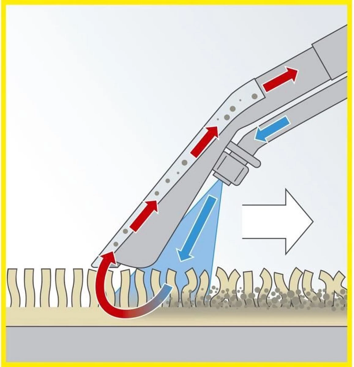 De SE 4001 sproei-extractiereiniger reinigt tot diep in de vezels van stoffen oppervlakken, zoals tapijten, bekleding, gestoffeerde meubels, trappen met tapijt, matrassen, wandkleden en autostoelen. Leidingwater en Kärcher RM 519 tapijtreiniger worden onder druk diep in het stoffen oppervlak gespoten en samen met het opgeloste vuil verwijderd.