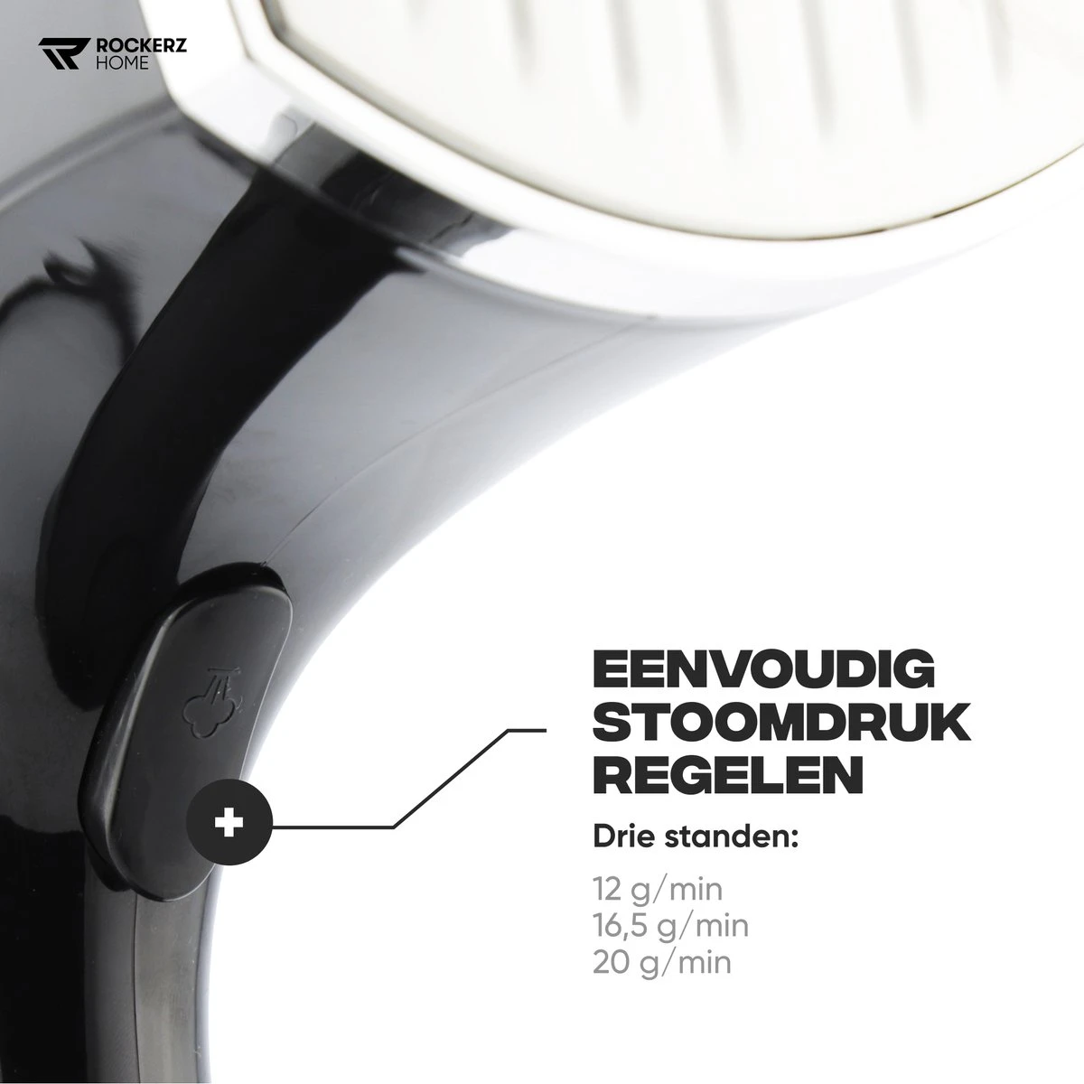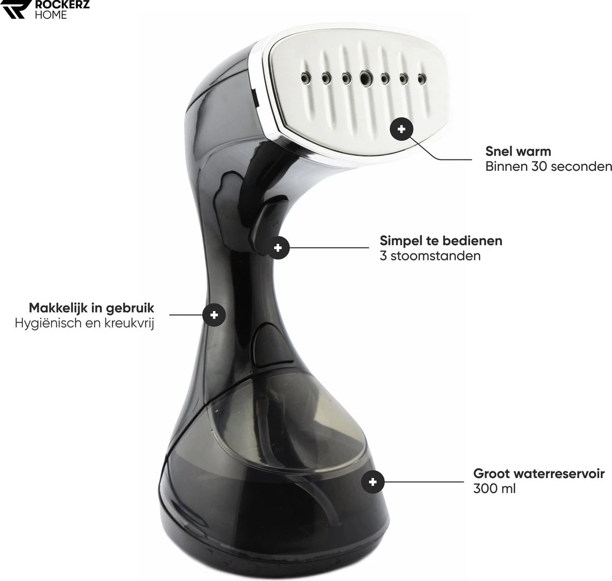 Wil je jouw kleding gemakkelijk kreukvrij maken? Dan is de Rockerz Home kledingstomer de perfecte oplossing! In een handomdraai stoom je jouw favoriete kleding hygiënisch en kreukvrij met deze krachtige en stijlvolle stomer. Met een groot waterreservoir van 300 ml hoef je hem niet continue bij te vullen. De stomer is licht van gewicht en zeer makkelijk in gebruik. Het duurt slechts 30 seconden voordat de stomer is opgewarmd en met de 3 standen kun je zelf de stoomdruk bepalen.