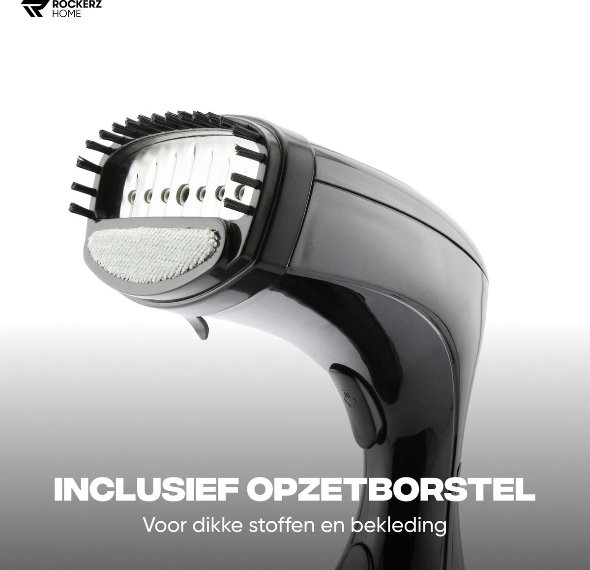 De Rockerz Home kledingstomer wordt geleverd met borstel opzetstuk. Deze is bedoeld voor dikke stoffen en bekleding. Op deze manier kun je zelfs gordijnen of je dikke winterjas met stoom reinigen. Het pluisborstel gedeelte van het opzetstuk werkt goed op gevoelige stoffen en verwijdert kleine stofdeeltjes.