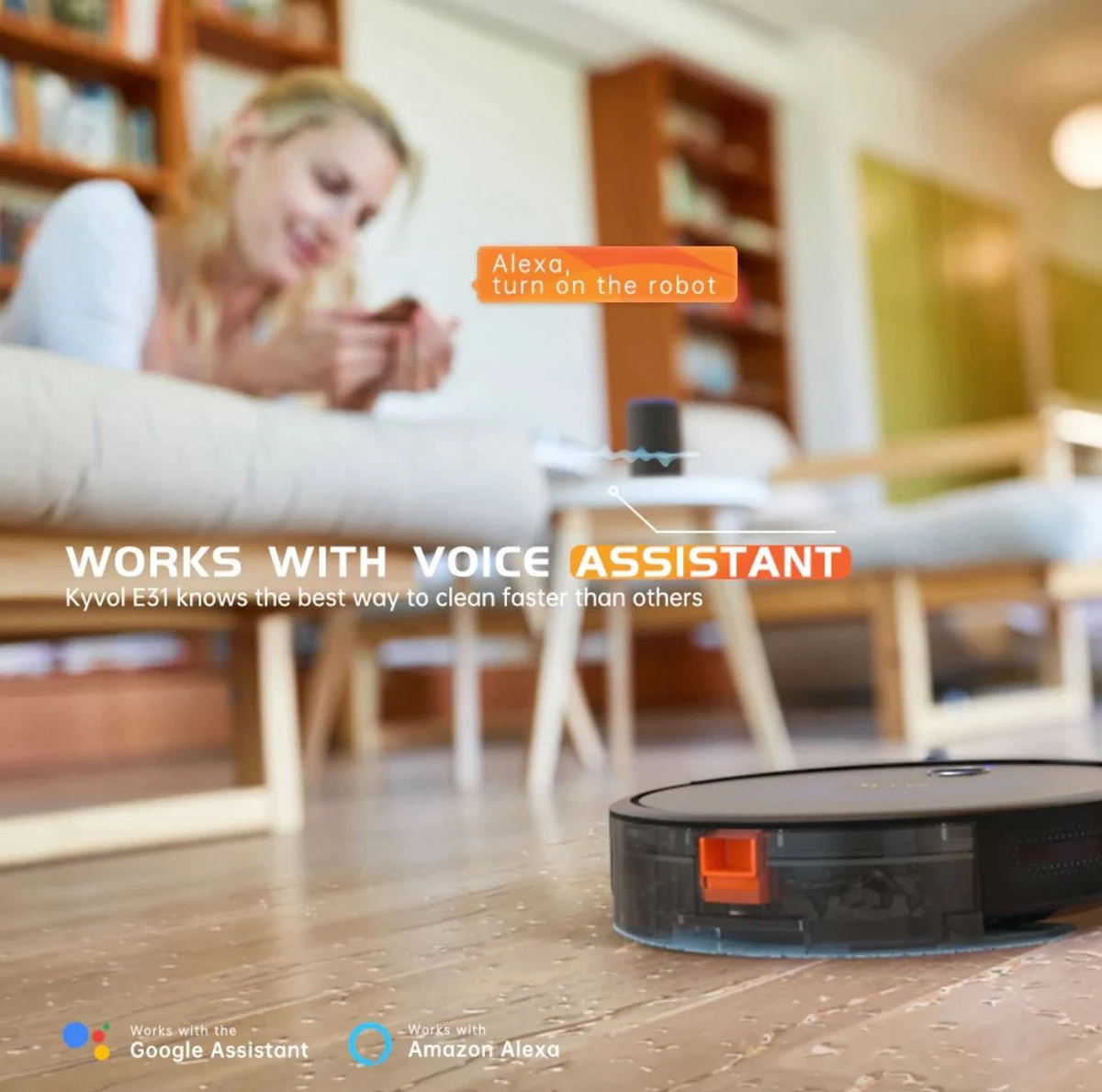 Verbind de Kyvol E31 met de app voor diverse opties. Kies de zuigstand, pas het watervolume aan, stel een rooster in en volg de robot live. Het is ook mogelijk om de robot handmatig te besturen of met je stem via Amazon Alexa of Google Assistant.
