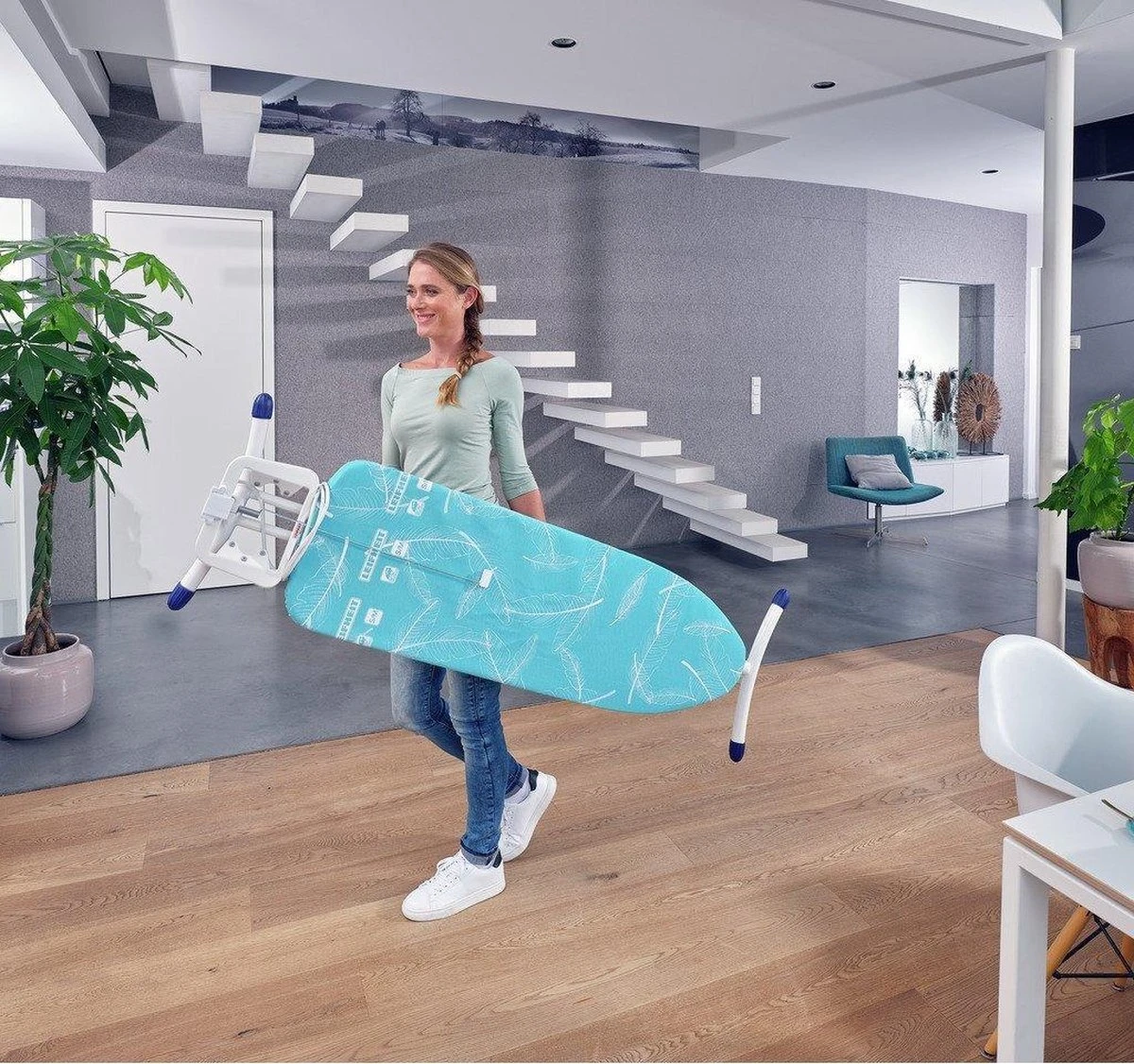- Dankzij het strijkvlak van speciaal kunststof is de strijkplank ultralicht.