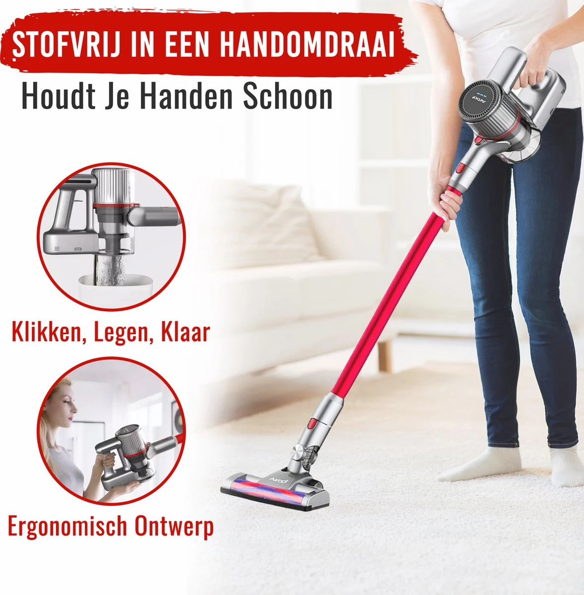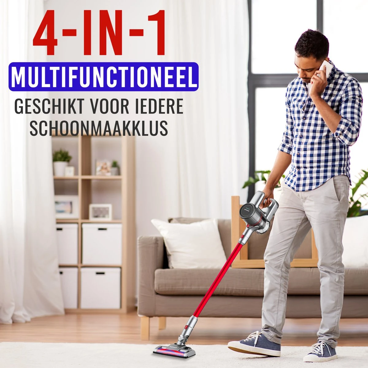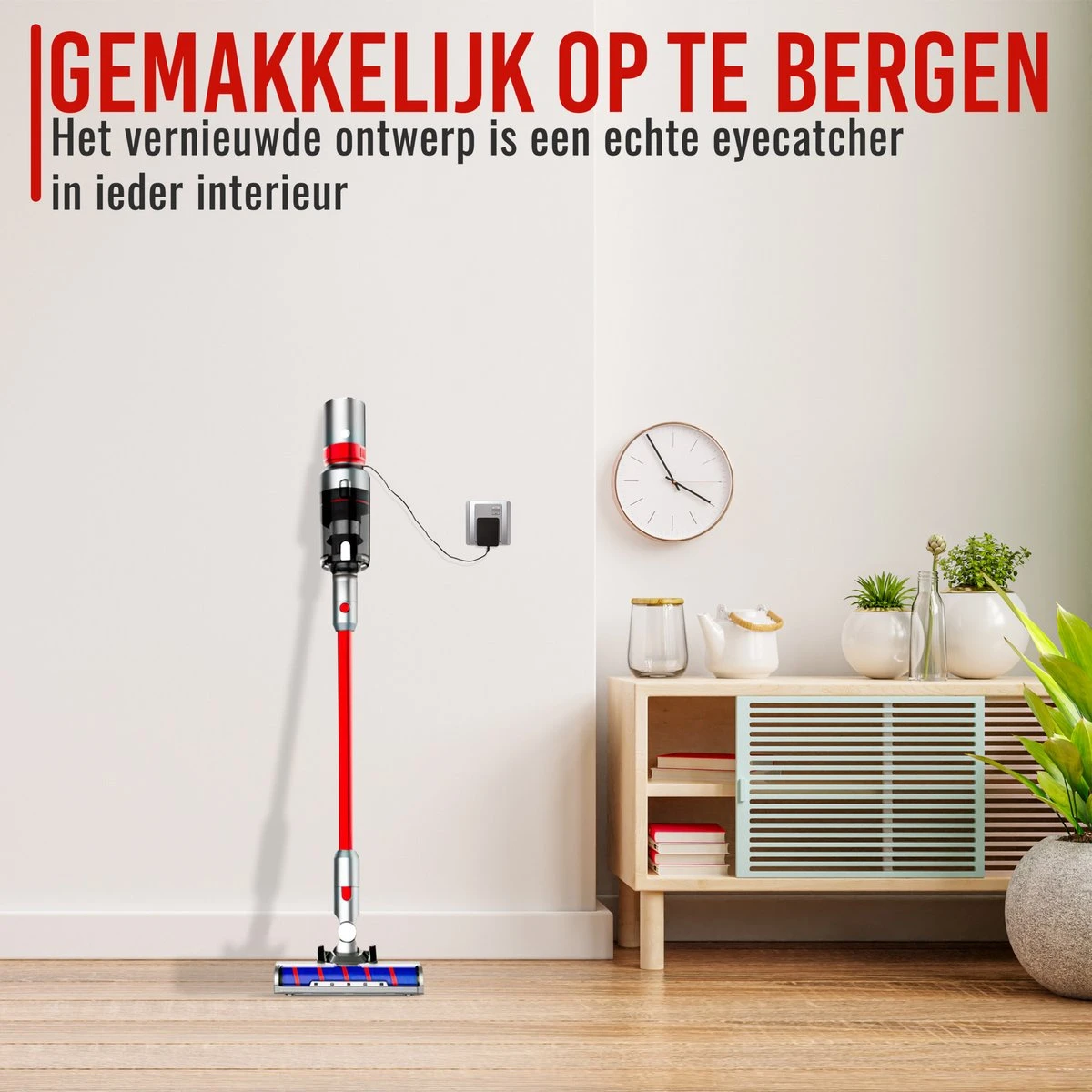 De ingebouwde 2200mAh lithium batterij zorgt ervoor dat je binnen 4 uur de accu volledig hebt opgeladen. Vervolgens kan je met een volledig opgeladen accu met de lage stand tot wel 45 minuten lang gebruik ervan maken. Bij gebruik van de hoge stand kan het maximaal 25 minuten, zodat je kleinere vloeroppervlakten effectief kan reinigen. Met deze stofzuiger beschik je over een langere accuduur en levensduur.