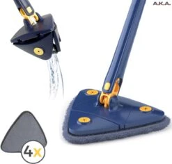 360° draaibaar: de reiniging met 360° roterende driehoekige kop kan gemakkelijk elke hoek reinigen, voor moeilijk en diep bereikbare ruimtes. De verstelbare dweil zorgt voor meer comfort bij uw schoonmaakwerk en verbetert de werkefficiëntie.