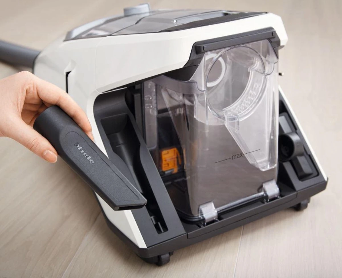 Een hygiënisch resultaat doordat grof vuil en fijnstof uitstekend van elkaar gescheiden worden: het grove vuil belandt in het transparante stofreservoir, het fijnstof in een apart reservoir met fijnstoffilter.