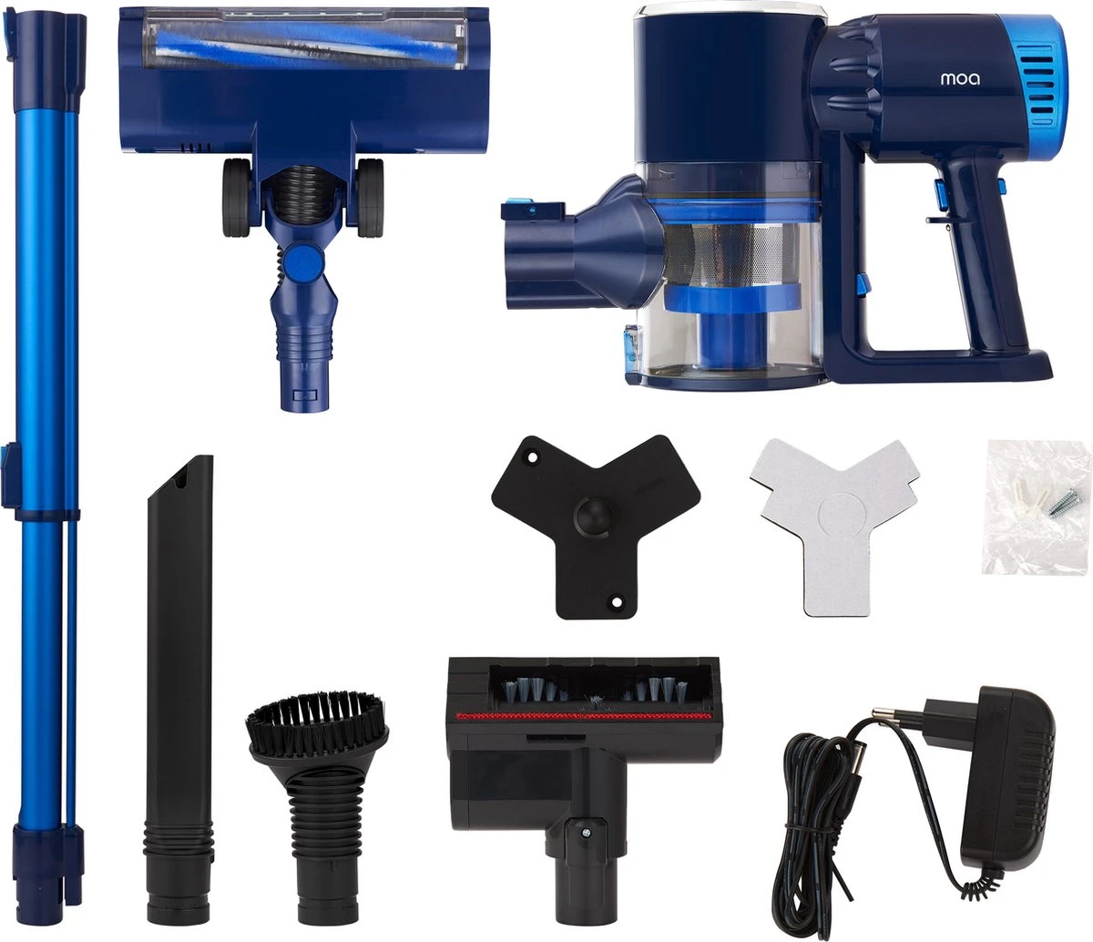 Het stofzuigen van je woning is vaak een rottig klusje. Een snoer dat te kort is, een zwaar apparaat dat je de trap op moet slepen of gedoe met een volle stofzuigerzak: het zijn dingen waar je niet op zit te wachten. Met de MOA snoerloze steelstofzuiger MOAVC03DB is stofzuigen heel fijn. Het apparaat werkt op een oplaadbare batterij met een capaciteit van 2600 mAh, waardoor je geen snoer nodig hebt. Tel daarbij op het lichte gewicht, een handig LED-scherm en een LED-strip voor het stofzuigen van donkere plekken, en ervaar het gemak van deze steelstofzuiger van MOA. Ook ideaal als handstofzuiger voor spinnenwebben of de auto uitzuigen.