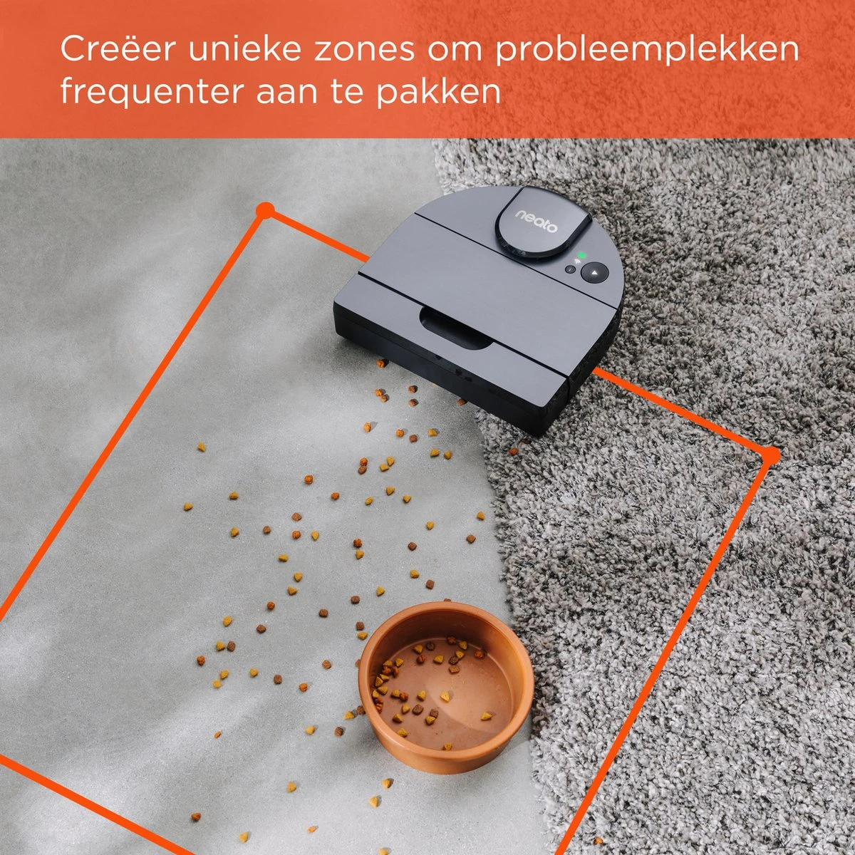 - Reinigen waar u wilt, wanneer u wilt. Bedien de robot met de MyNeato-app. Plan het reinigen met routines voor het hele huis of doelgerichte zones. Creëer virtuele zones en no-go-zones om te beheren waar de Neato reinigt – en waar niet