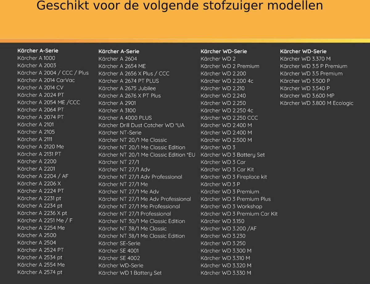 Geschikt voor de volgende modellen Karcher stofzuiger: