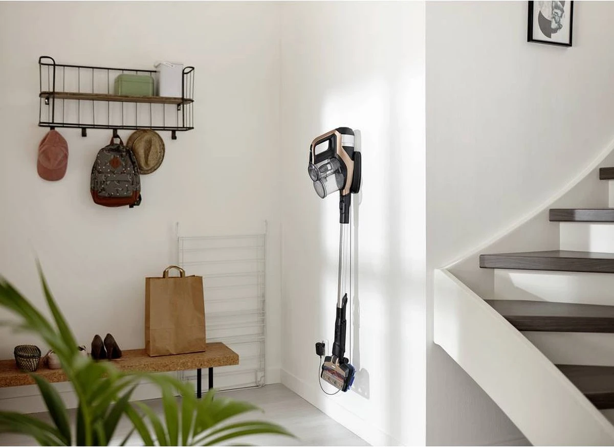 - Basisstation met wandmontage: De muursteun is eenvoudig te bevestigen met slechts 2 schroeven, ook is de magnetische oplader gemakkelijk te bevestigen zodat je de steelstofzuiger gelijktijdig kunt opladen