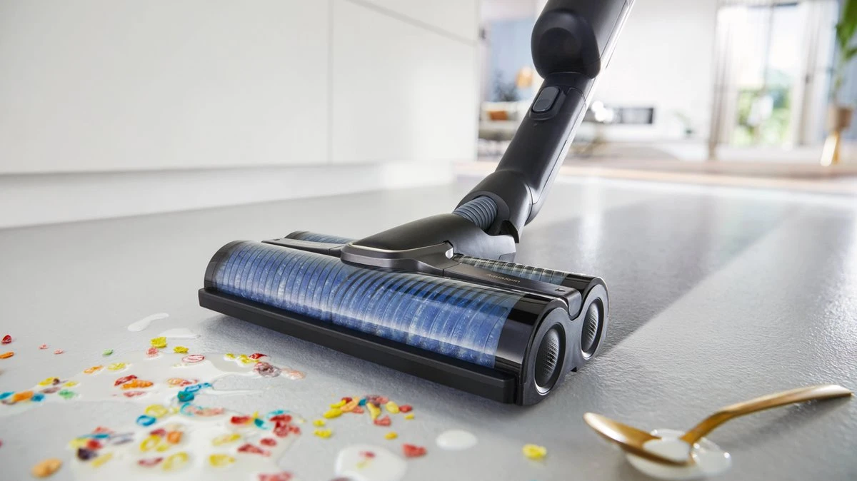 * De enige snoerloze oplossing met 3 configuraties (alleen stofzuiger, stofzuiger en actieve dweil, kruimelzuiger); verwijderen van verschillende soorten vuil zowel vooruit als achteruit, inclusief gemorste vloeistoffen, en continu gereinigde borstels.