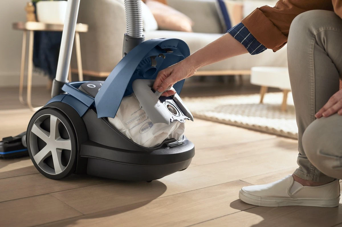 De grote stofkamercapaciteit kan een volle zak van vier liter aan voordat de zak moet worden vervangen. Hierdoor kun je lang ongestoord stofzuigen.