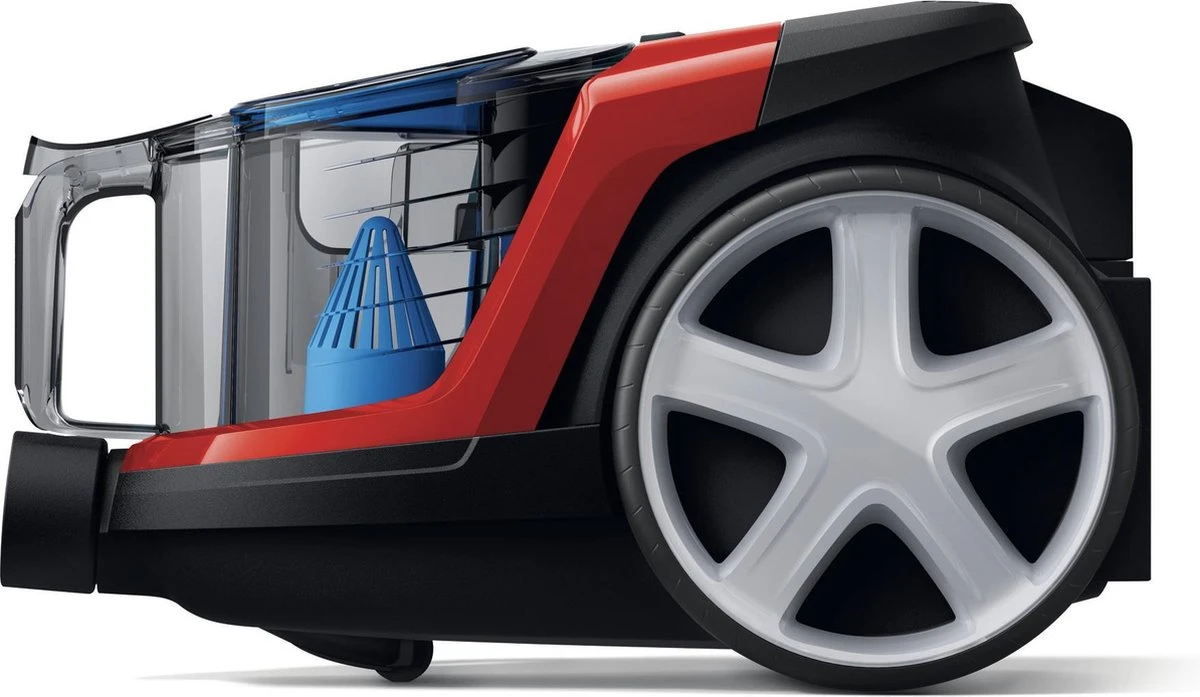 De PowerCyclone 5-technologie maximaliseert de luchtstroom en prestaties doordat vuil meteen van lucht wordt gescheiden. Het apparaat biedt uitstekende reiniging dankzij deze zeer efficiënte stappen: 1) Lucht komt snel in de PowerCyclone dankzij het design van het luchtinlaatrooster. 2) De gebogen luchtdoorvoer versnelt de lucht in de gewervelde kamer waardoor de stof van de lucht wordt gescheiden. 3) De geoptimaliseerde uitlaatbladeren houden het vuil gescheiden en zorgen ervoor dat het in de stofemmer belandt.
