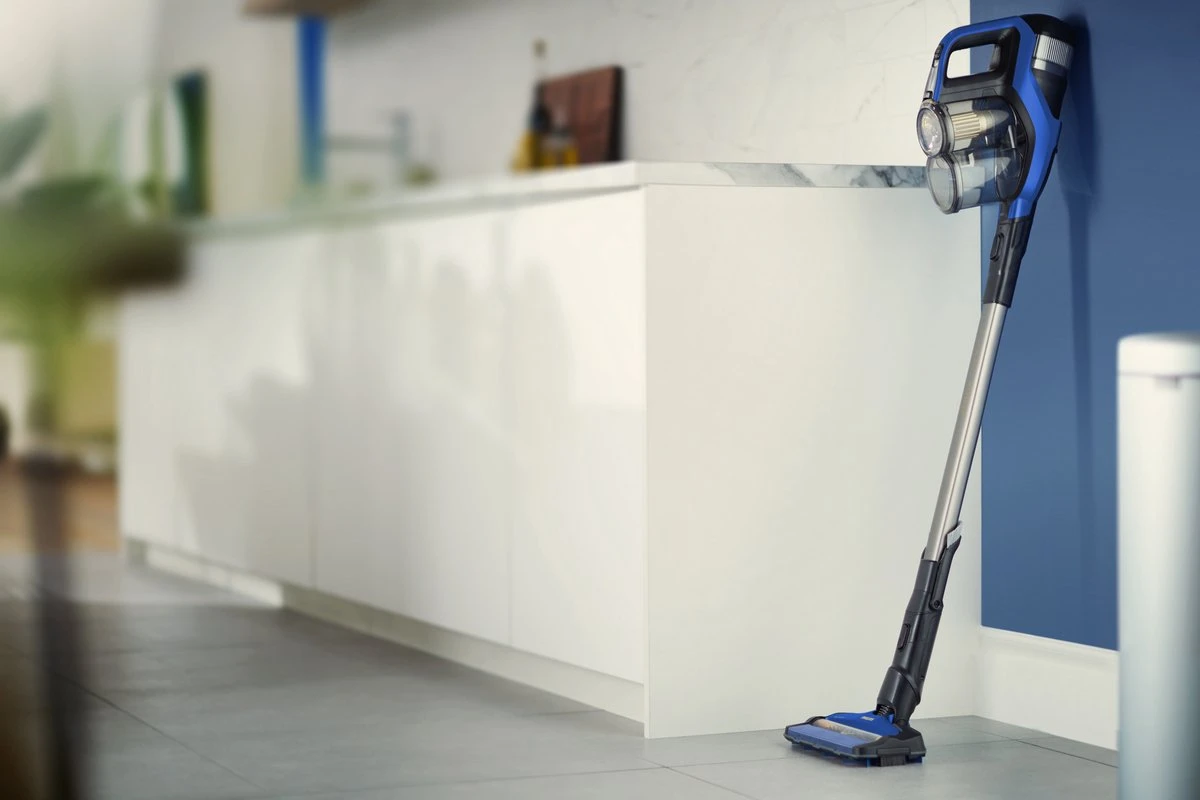 Deze steelstofzuiger komt met de nieuwe PowerCylone 10 technologie voor zakloze stofzuigers. De krachtige PowerCyclone 10 zorgt voor een 30% efficiëntere scheiding van lucht en vuil, waardoor SpeedPro Max langer zijn hoge zuigkracht behoudt. Dit gebeurt in 3 efficiënte stappen: 1) Dankzij de egale luchtinlaat gaat lucht en vuil snel de PowerCyclone in de lucht snel de PowerCyclone in. 2) De gebogen luchtdoorlaat versnelt de opgaande luchtstroom in de cyclonische kamer. 3) Boven in de cyclonische kamer wordt het stof en vuil effectief van de lucht gescheiden door de uitlaatbladen.