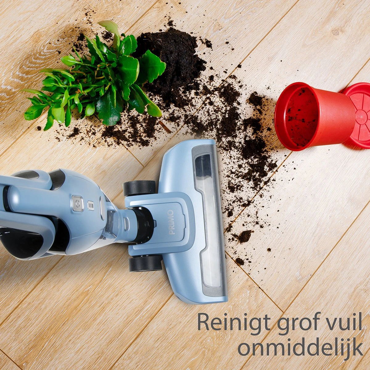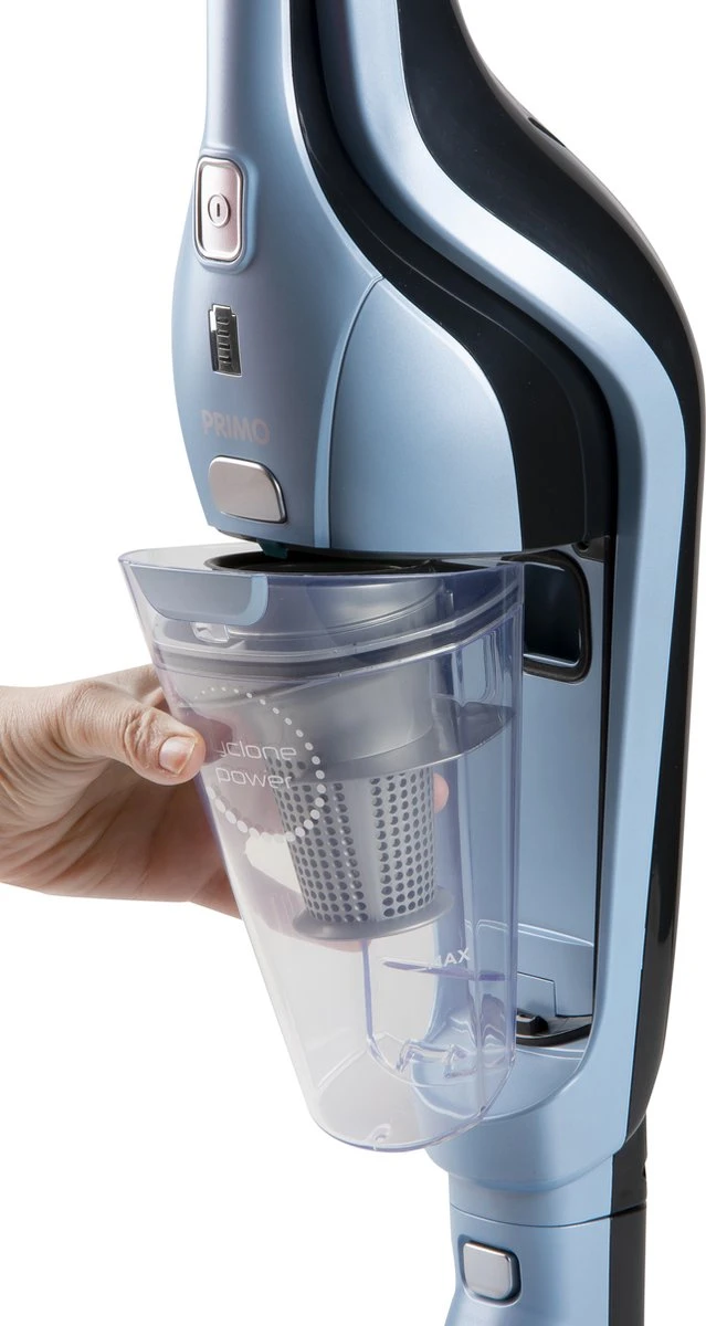 De PRIMO PR507SV 2-in-1 steelstofzuiger zonder zak / kruimelzuiger is je ideale hulpje om snel wat op te zuigen. Zo blijft je vloer schoon zonder direct de grote bedrade stofzuiger te moeten pakken. Ook heeft de PR507SV een flexibele borstelkop om gemakkelijk in ieder hoekje of onder banken te komen. De krachtige 18 V Lithium-Ion accu geeft je maar liefst 40 minuten kracht op de ECO stand als kruimelzuiger. Is de zuigwerk toch hardnekkiger dan schakel je over naar de TURBO stand met 20 minuten zuigkracht via de borstelkop. De Flexibele borstelkop met LED-verlichting is geschikt voor alle vloertypen. Doordat de PR507SV Steelstofzuiger draadloos is, heb je complete bewegingsvrijheid. Als je de steel verwijderd verander je de Handstofzuiger in een kruimelzuiger. De PR507SV komt in de kleur Blauw.
