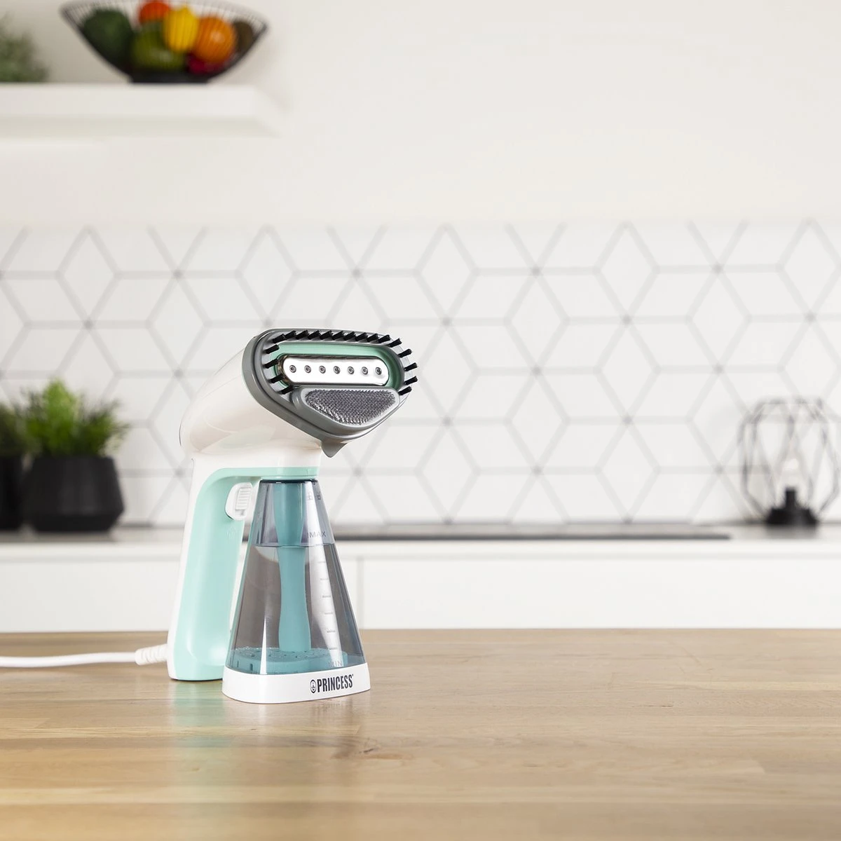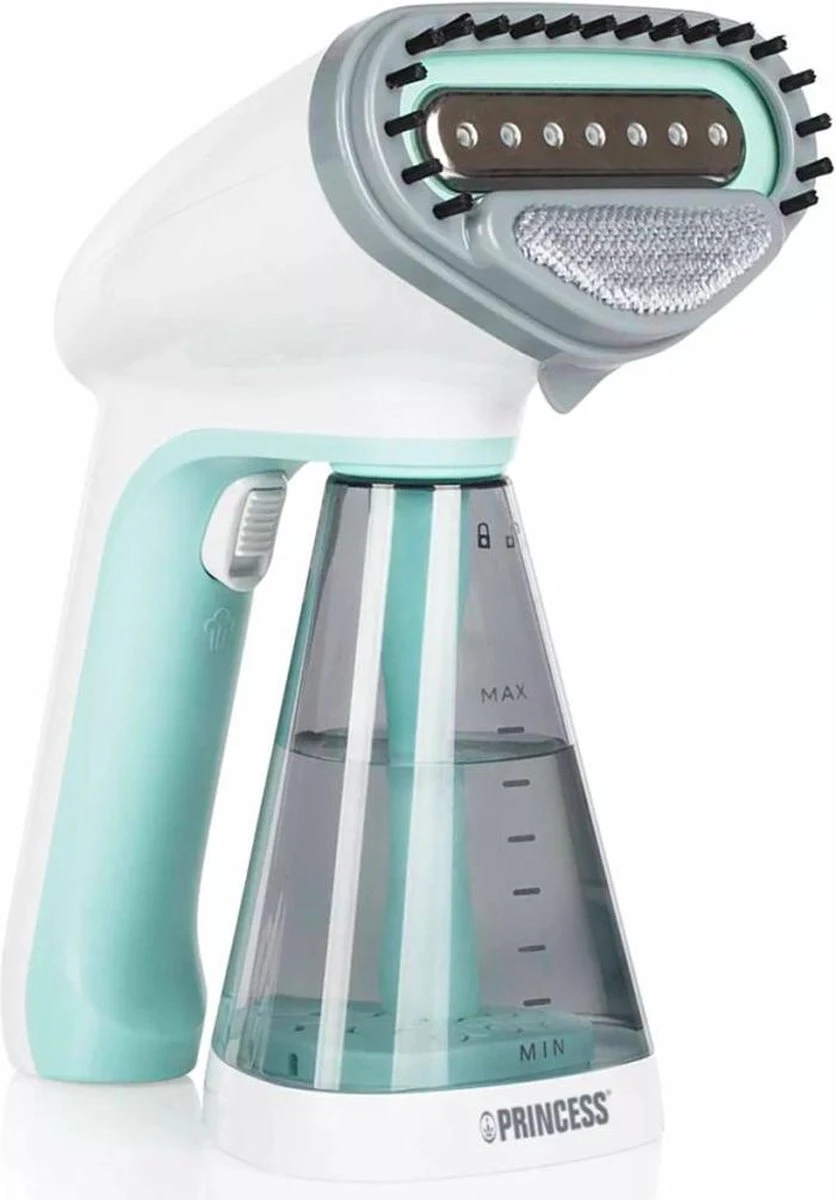De Princess Kledingstomer heeft een afneembare borstelkop die je kan gebruiken om dikkere stoffen zoals mantels en bekleding te stomen. Fijn als je je winterjassen weghangt voor de zomer of juist weer terug in gebruik neemt. De borstelkop heeft ook een speciaal gedeelte dat stof en pluisjes verwijdert.