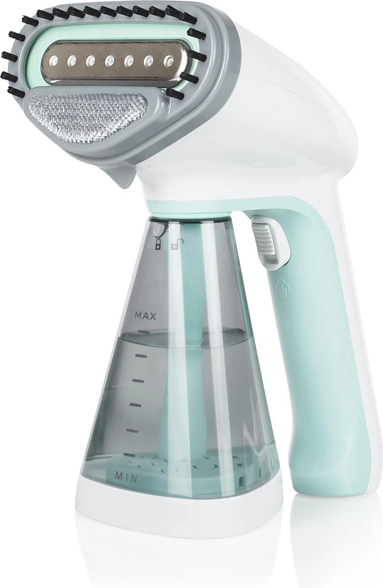 Het uitneembare waterreservoir heeft een inhoud van 260 ml. Dit is genoeg om minstens 5 minuten onafgebroken te stomen. Daarnaast ontvang je ook de innovatieve adapter waarmee je eenvoudig elk waterflesje aansluit. Perfect als je de Princess Kledingstomer meeneemt op vakantie of zakenreis. Pak enkel de houder zonder waterreservoir en de adapter in en bespaar ruimte in je koffer.