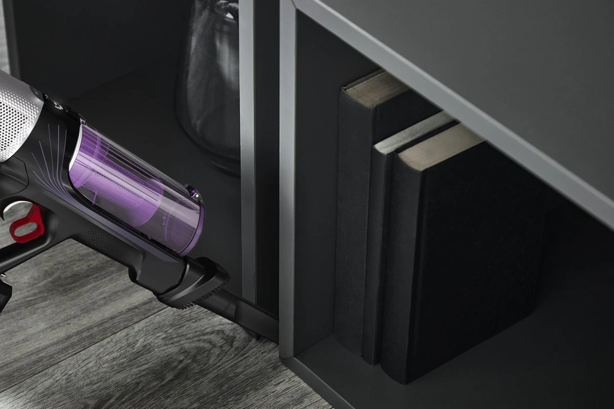 De steelstofzuiger biedt een hoge prestatie, dankzij de sterke zuigkracht tot wel 100 Airwatt. De batterij van 18,5V heeft dan ook wel een looptijd tot 45 minuten. Het ultra-lichtgewicht ontwerp heeft een slank en compact ontwerp. Waarbij de kruimelzuiger slechts 1,1kg is. De slimme en geoptimaliseerde reiniging zorgt ervoor dat de zuigkracht zich aanpast per vloertype. De Flexibele buis zorgt ervoor dat elke plek bereikt kan worden. Ook heeft de stofzuiger een Smart Control-Display die de resterende batterijduur toont en aangeeft wanneer het filter gereinigd moet worden. De filtratie die in de stofzuiger zit zorgt ervoor dat 99,9% van het fijnstof wordt opgevangen en gescheiden.