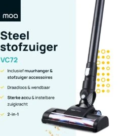 MOA – Steelstofzuiger – 2-in-1 – Kruimelzuiger – Draadloos – 120 Watt – Zonder Zak – VC72