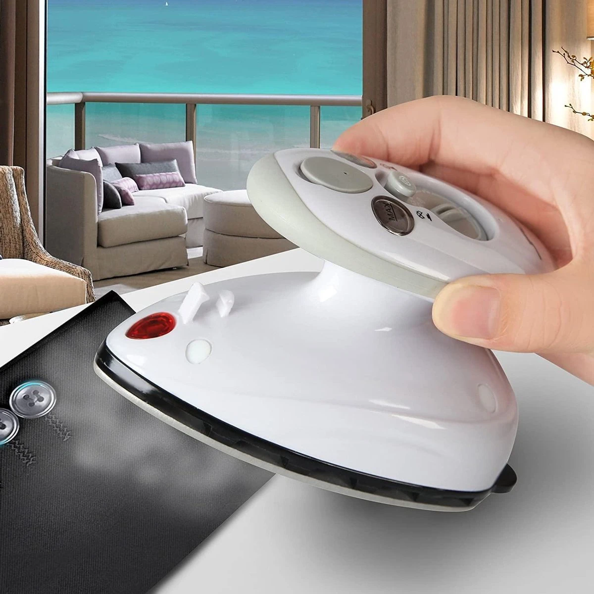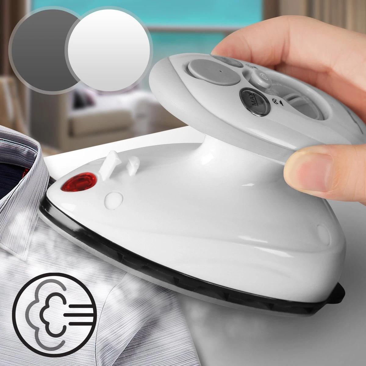 Compact reisstrijkijzer voor kreukvrij reizen.