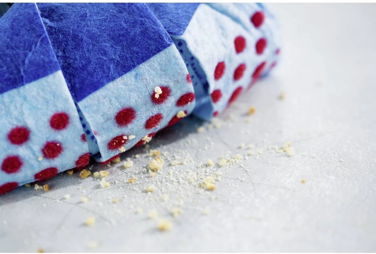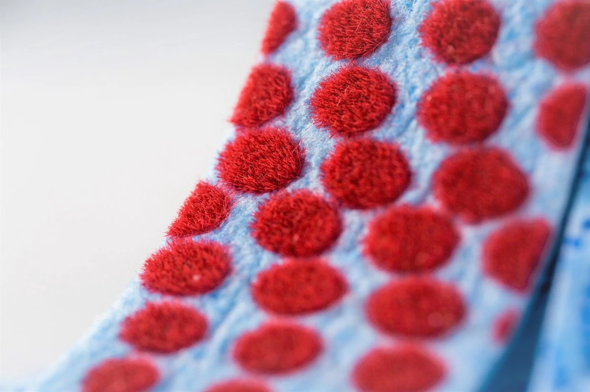 • Rode vezels van gevlokt velours om vuil op te vangen en vast te houden tot het uitspoelen