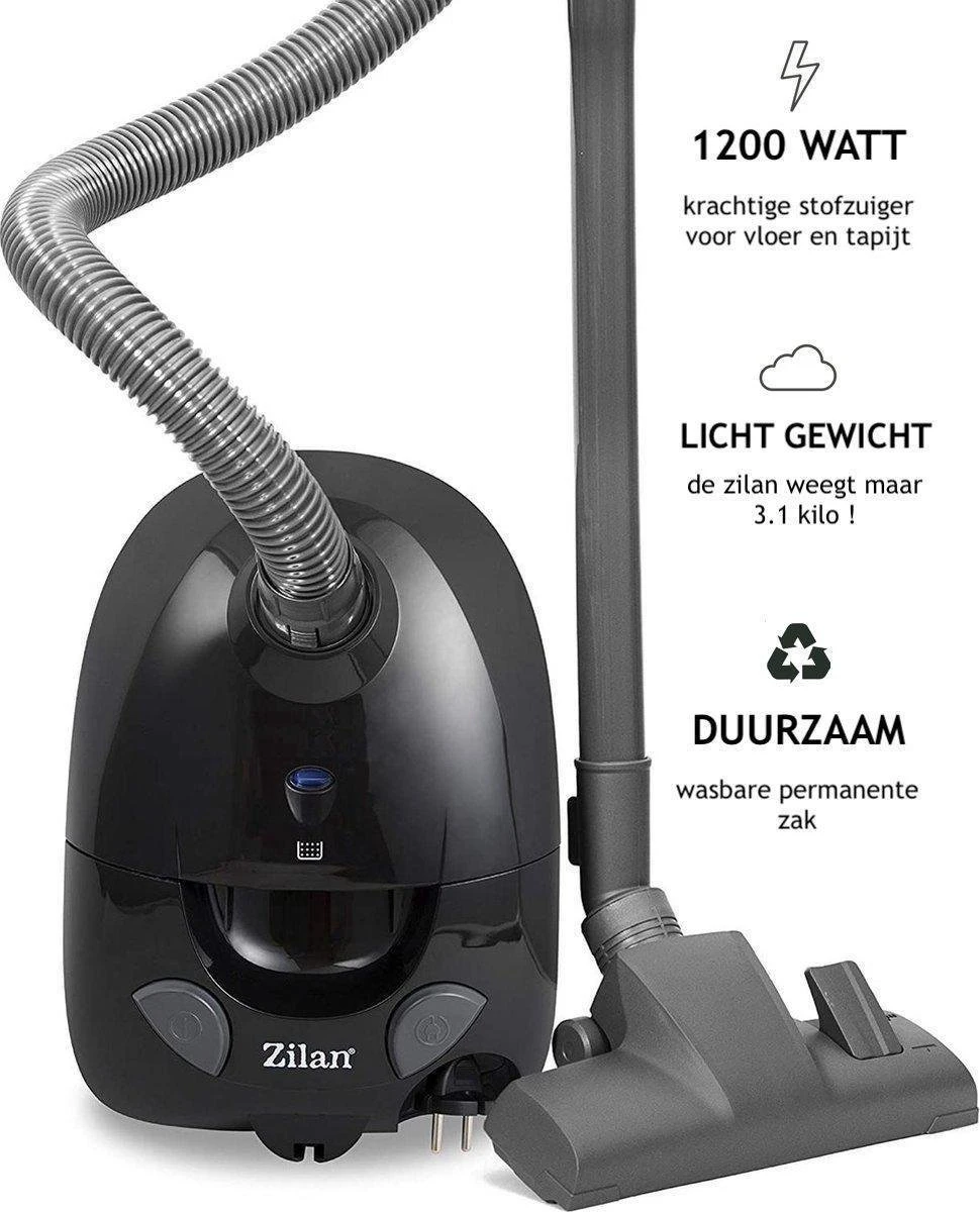 De Zilan ZLN8471 is een stofzuiger met een permanente zak die je dus nooit meer hoeft te wisselen, deze kan je indien nodig gewoon wassen. Dit scheelt dus lekker in de portomonnee. De stofzuiger heeft een zuigkracht van 1800, hiermee zuig je ook zonder problemen het vuil en stof op harde vloeren.
